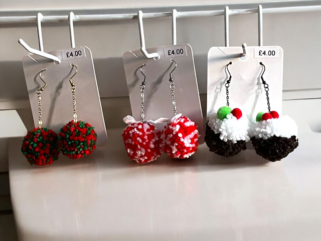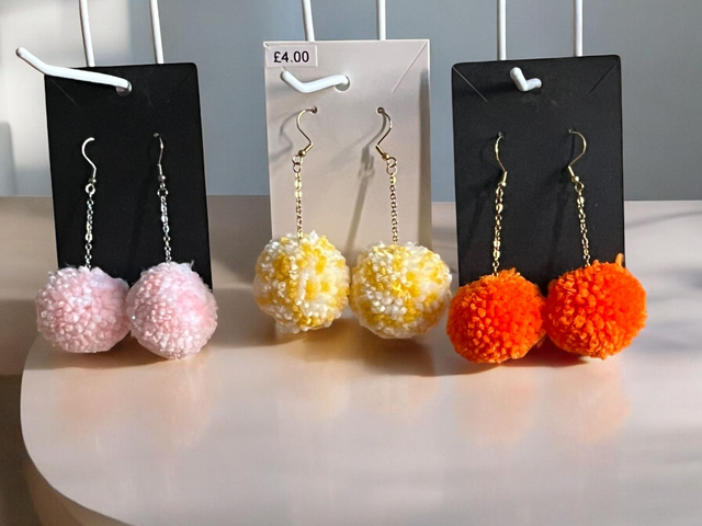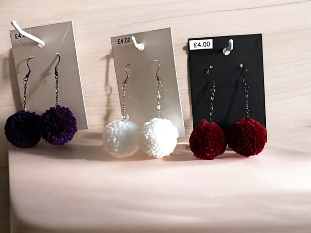 Handmade pom pom earrings.